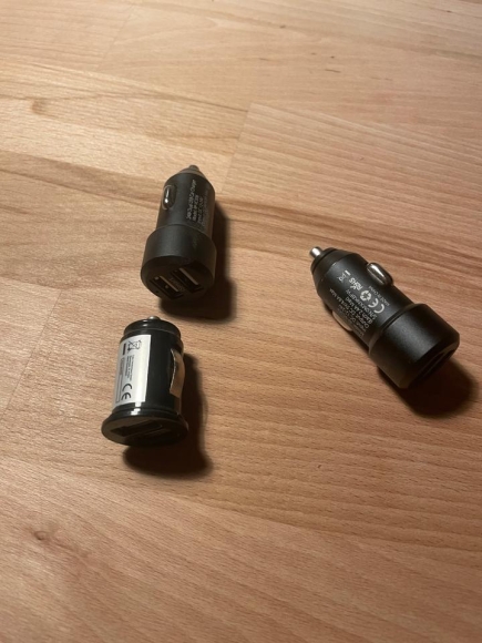 Die Teile damit du dein Handy laden kannst, wenn dein Auto zu alt ist, um einen USB-Anschluss zu habe. Alle 3 zusammen 5€
