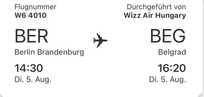 Ich biete hier Flugtickets nach Belgrad vom 05.08.25-12.08.25.