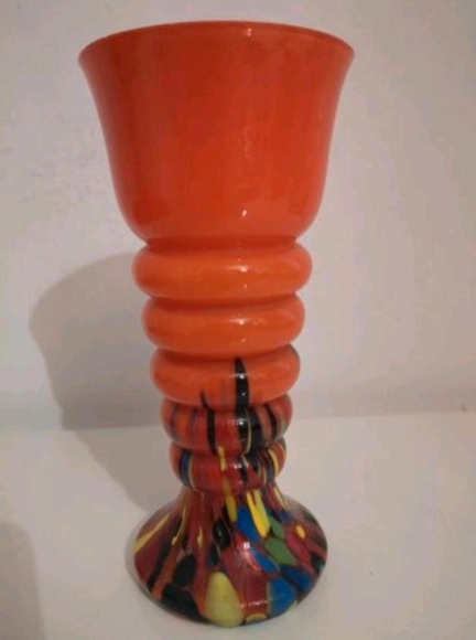 Die Vase mit farbigem Spatterglas ist in einwandfreiem Zustand und 15,5 cm hoch