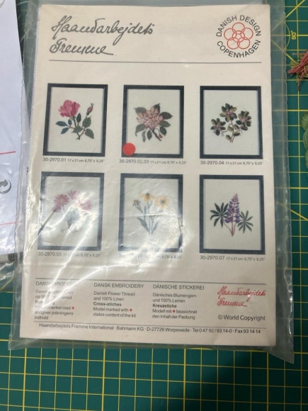 Dabei ist ein Stück Leinen sowie das restliche Stickgarn.