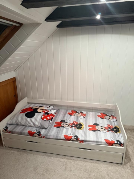 Es ist unbenutzt mit einem kissen mit einem decke auch mit Bettwäsche + zwei Matratzen.