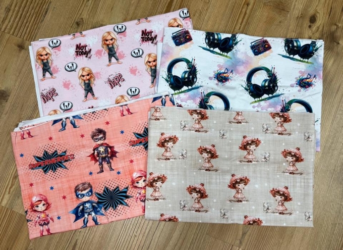 Jersey Stoffpaket 2m Superhelden Kopfhörer Mädchen