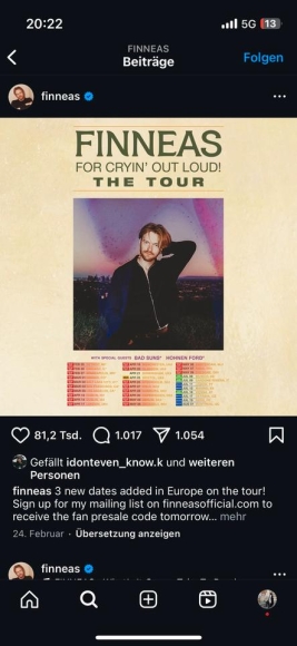 Verkaufe 1x Ticket für Finneas in Berlin 02.05 + Hotel Zimmer