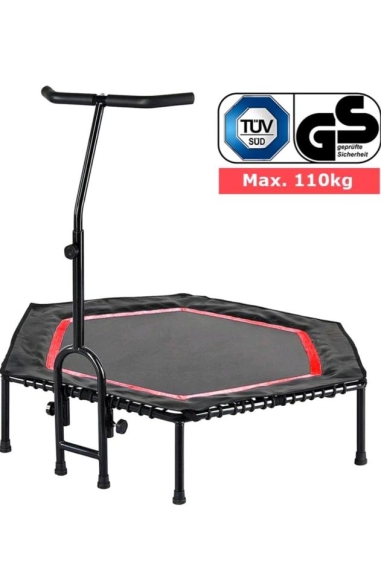 TÜV-geprüftes Fitness-Trampolin: hochbelastbare, verzinkte Stahlfüße für optimalen Halt