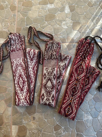 Handgefertigte zeremonielle Gürtel aus Schafwolle. Die Symbole sind unter anderem die heiligen drei Lagunen und das Auge des Puma.
