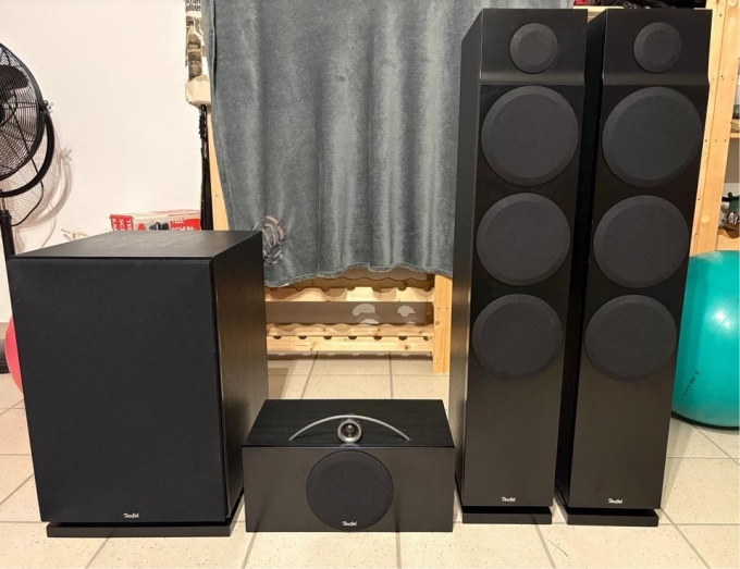 Teufel Soundsystem, Frontspeaker, Center, Subwoofer, Bananensteck