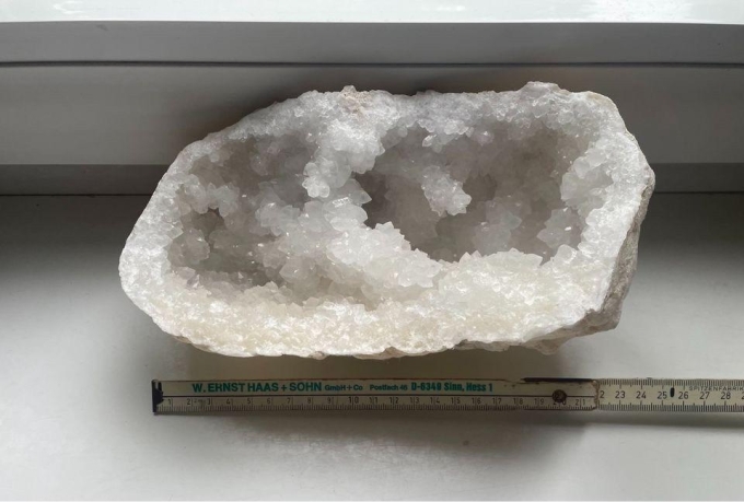 Sehr hübsche Hälfte einer Quarz Druse, steht stabil.