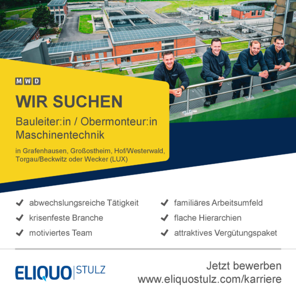 Jeder Wassertropfen zählt! ELIQUO STULZ ist einer der größten deutschen Anlagenbauer für Wasser- und Abwassertechnik. Als Tochterunternehmen der ELIQUO WATER GROUP bauen wir innovative Umwelttechnik für unsere kommunalen Kunden. Mit über 230 Mitarbeiter:innen verfolgen wir unsere Mission, einen wertvollen Beitrag zum Umweltschutz durch die Wiederaufbereitung und Reinigung von Wasser zu leisten.