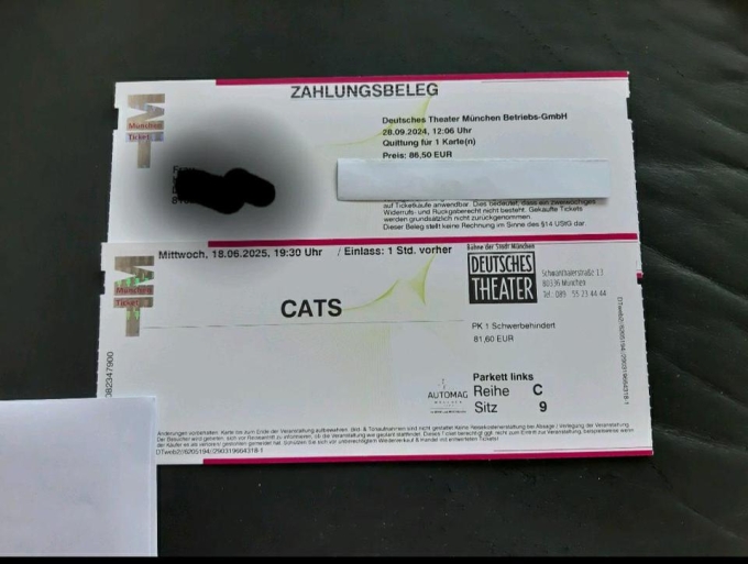 Deutsches Theater in München " Cats " am Mittwoch 18.06.25 um 19.30h.