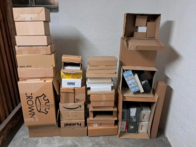 Kartons verschiedener Größen abzugeben, z.B. für Paketversand. Benutzt aber gut erhalten. Lagerten bis vor kurzem in trockener Abstellkammer, jetzt Keller. Müssen bis 16.1. weg, landen sonst im Altpapier. 1€ pro ca. 10 Stück. Abzuholen nach freundlicher Anfrage und Terminvereinbarung So-Fr 13-21h in München-Ost Nähe S Gronsdorf.