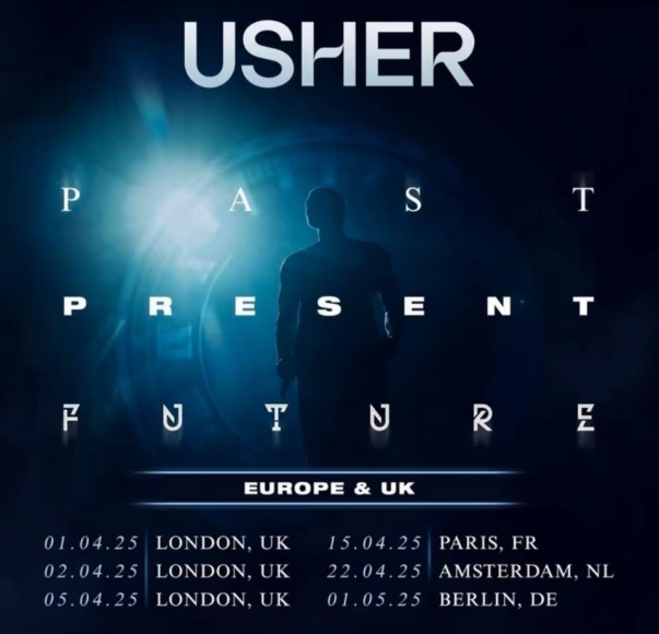 Mit seiner "Past Present Future"-Tour kommt der US-amerikanische RnB-Sänger Usher am 1., 2. und 4. Mai 2025 in die Uber Arena in Berlin.