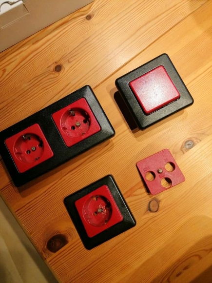 Diverse Doppelrahmen Steckdoseneinsätze Unterputzeinsätze von Kopp in rot / schwarz