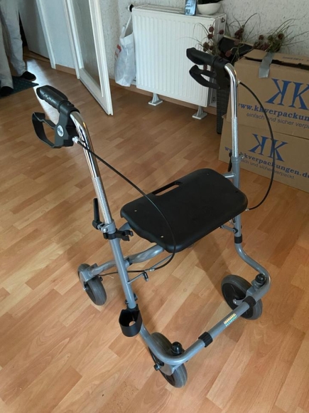 Biete hier eine Gehilfe zur Unterstützung beim Laufen. Der Wagen ist so gut wie unbenutzt und kommt leider auf den Sperrmüll, wenn er bis zum 11.06. keine neuen Eigentümer hat.