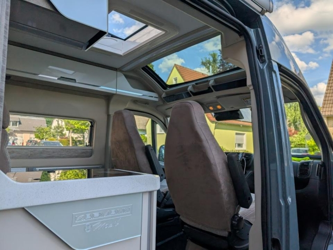 Wunderschönes Karmann Womo in Lackierung „Lanzarote Grey“ mit heller Innenausstattung und dem besonderen Ambiente durch das Panoramadach in Karmann Qualität.