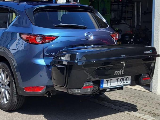 Die Backbox wird mit dem abschliessbaren Trägersystem auf die Anhängerkupplung montiert, das machen wir bei der Abholung gleich zusammen.