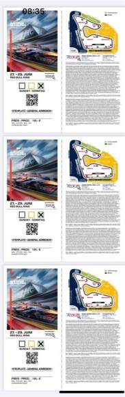 Zum Verkauf stehen 3 Tickets für die F1 in Spielberg.