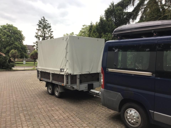Wird Mitte Juli gegen Gebot abgegeben.Fragen letzte Preis usw werden nicht beantwortet.100 km/h Zulassung.TÜV bis 5.27.Innenmaße Länge 275 Breite 180 Höhe 175 cm.Anhänger ist überholt worden.Anhänger ist zugelassen.Sehr robuste Plane von Dr Thiel neuwertig.Nutzlast ca 1100 kg.