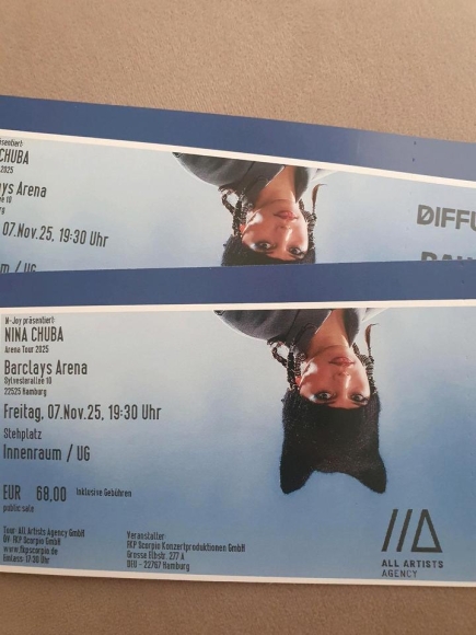 Ich verkaufe 2 Konzertkarten für Nina Chuba in der Barclays Arena in Hamburg am 07. November 2025.
