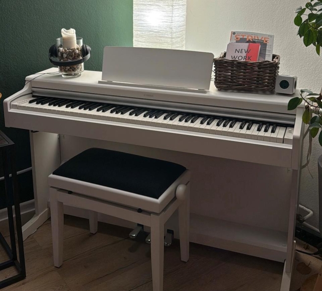 Verkaufe mein weißes E-Piano mit Hocker. Vor 2 Jahren habe ich es neu gekauft. Es wurde kaum genutzt, daher wie neu ohne Kratzer etc. Ich war Anfänger.