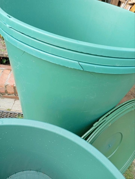 Regentonne mit Deckel,neu ,sind beim Transport leicht gebrochen am Rand und die Deckel.... 1 × 2,40 und 3× 300 l