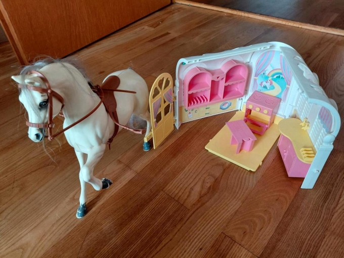 Küche von My little Pony und ein altes Barbie Pferd mit Sattel und Zauzeug zu verkaufen.