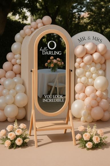 Ein moderner Fotospiegel mit Touchscreen, individueller Animation und Sofortdruck – verpackt in einem edlen Design. Deine Gäste stehen vor einem Ganzkörperspiegel, sehen sich live, tippen „Touch to Start“ – und der Spaß beginnt!