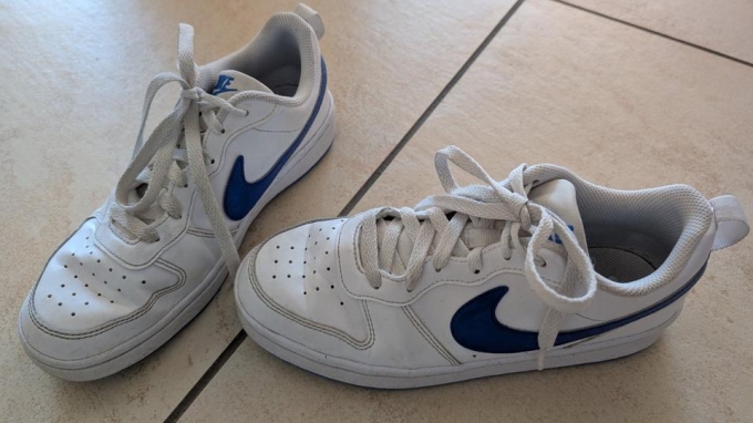 Wir verkaufen die sehr gut erhaltenen weißen Sneaker von Nike in Größe 38.5