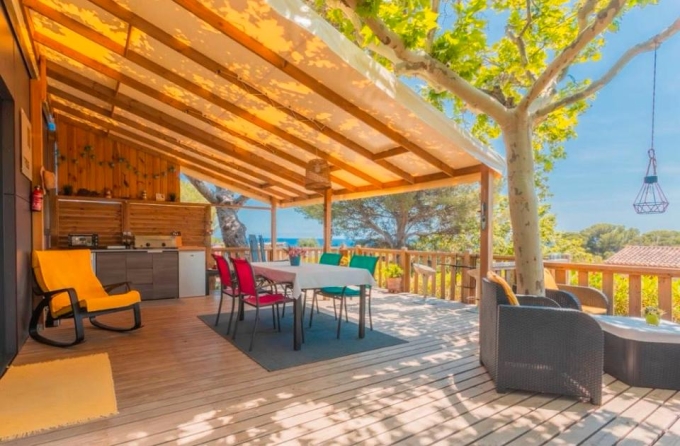 Das moderne Mobilheim Taos bietet Ihnen in Saint-Raphaël, einen unvergesslichen Urlaub in Südfrankreich. Mit einer Wohnfläche von 38 m2 und einer großzügigen überdachten Terrasse von 40 m2 genießen Sie hier traumhafte Aussichten auf das Mittelmeer.