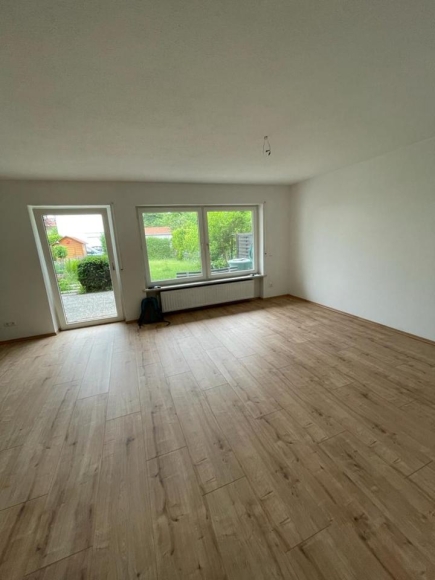 Im Erdgeschoss gibt es hinter der Haustüre einen Windfang, von wo aus man das Gäste-WC erreicht. Vom Flur aus gelangt man in die Küche und in das helle Wohnzimmer mit großer Fensterfront mit Zugang zu einer teilüberdachten Terrasse und dem Garten.