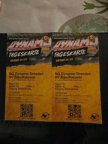 Bitte 2 Karten Derden gegen Sandhausen, 26.04.25, 14 Uhr