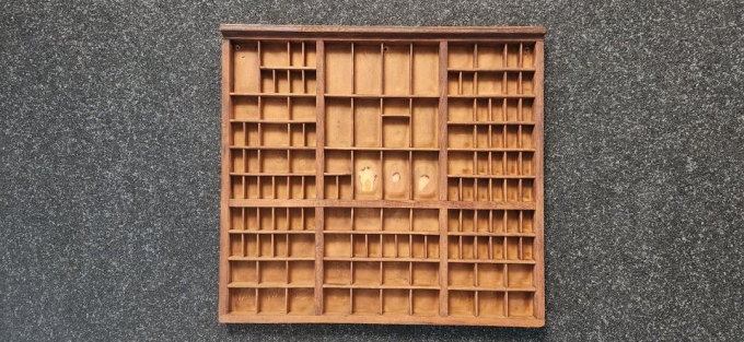 Setzkasten Schrift-Bleisatz Vintage 60er Jahre Vollholz