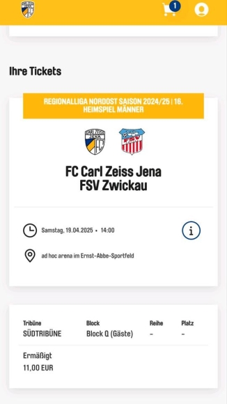 bitte ein Ticket für das Auswärtsspiel heute vom FSV Zwickau gegen Carl Zeiss Jena.