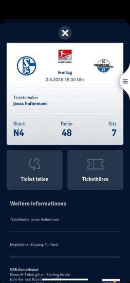Biete 2 ermäßigte Tickets für das Spiel gegen Paderborn an. (02.05.2025 - 18.30)