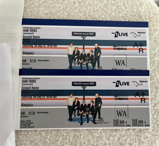 Verkaufe zwei Tickets für das ausverkaufte Konzert von Giant Rooks in Hamm am Samstag den 06.09