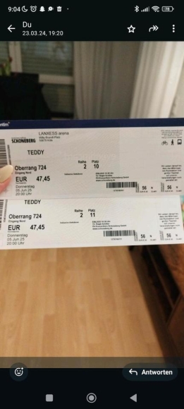 Aus gesundheitlichen Gründen müssen meine Freundin und ich diese Karten für nächste Woche Donnerstag leider abgeben.