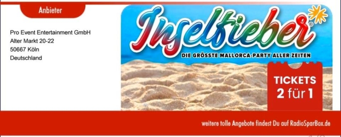 2 Tickets für Inselfieber 2025 in Oberhausen über die Radio Sparbox zum halben Preis gekauft.(mitlerweile ausverkauft)