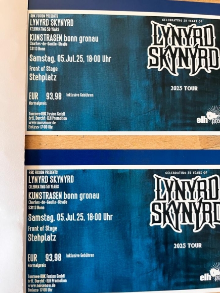 2 x Karten für das Lynyrd Skynyrd Open Air Konzert am Samstag , 5. Juli auf dem Kunstrasen Bonn