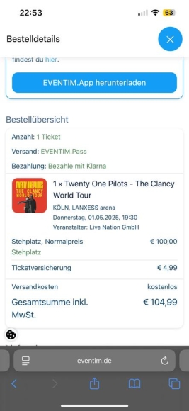 2x Twenty One Pilots Konzert Köln Tickets Stehplatz