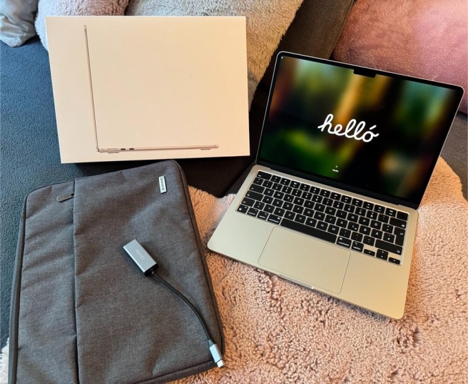 Wir verkaufen auf Grund einer Neuanschaffung ein nur sehr wenig benutztes Apple MacBook Air M2 im nahezu neuwertigen Zustand . Es befindet sich in einem sehr guten Zustand ohne Kratzer, Dellen oder sonstigen Schäden/Defekten. Auch das Display ist einwandfrei in Ordnung. Auf der Unterseite befindet sich ein minimaler und oberflächlicher Kratzer (ca. 1cm) welcher nicht mit dem Finger zu spüren ist und sich nichteinmal fotografieren lässt. Das Gerät wurde nur sporadisch verwendet.