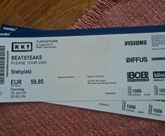 2 Tickets für zusammen 50 abzugeben. Müssen in Bocholt abgeholt werden.