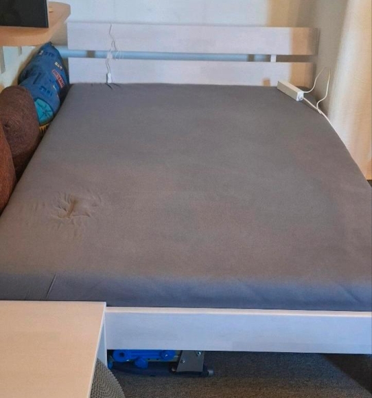 Wir verkaufen unser Bett mit Matratze und Lattenrost sowie den Nachttischen.