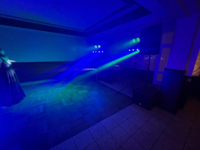 - Lichtanlage in LED Technik (Moving Heads / Beams, PAR Scheinwerfer, Nebel) aufgebaut auf Stativ oder Truss 3 Punkt Traverse