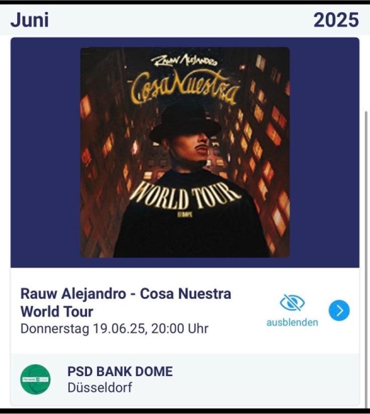 Zwei Eintrittskarten für das Konzert in Düsseldorf am 19.06.2025 um 20 Uhr von Rauw Alejandro im Oberrang 215