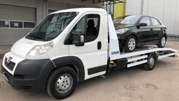 einem Abschleppwagen zu dem Kunden hin.