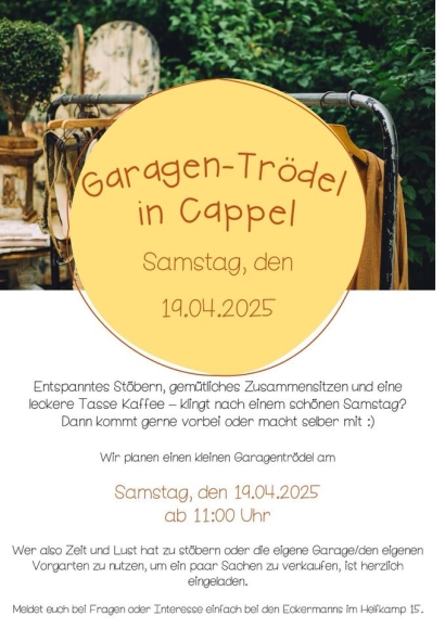 Heute, 19.04.2025 ab 11 Uhr im Helfkamp 15, 59556 Lippstadt