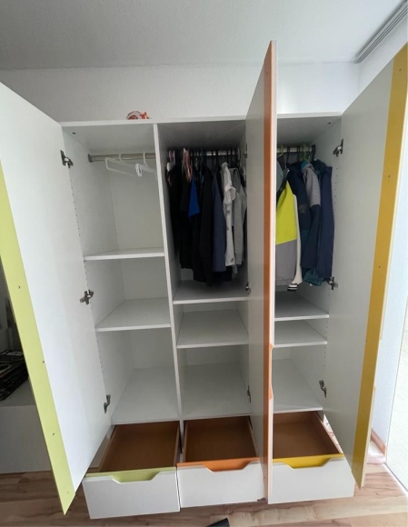 GEUTHER FRESH 3-TEILIGER KLEIDERSCHRANK IN WEISS UND BUNT H x B x T: 193 x 133 x 56,5 cm 3 Türen und 3 Schubkästen mit Soft-Close 3 Kleiderstangen 6 Einlegeböden