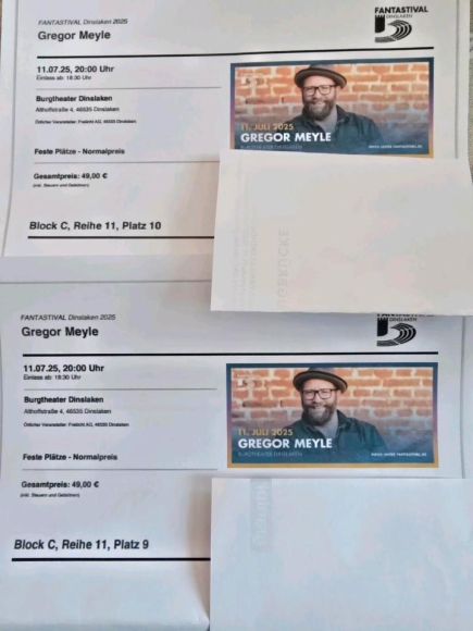 Ich verkaufe 2 Karten für GREGOR MEYLE am 11.07.2025 20 Uhr im Burgtheater Dinslaken