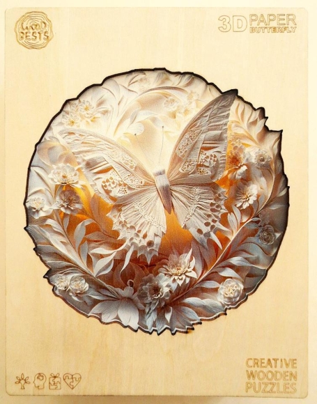 Holzpuzzle von WoodBests - 3D Paper Butterfly - Size L Ø 34 cm