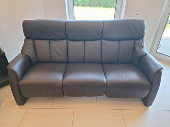 Ich verkaufe eine Couchgarnitur aus Leder (braun) bestehend aus einem 3-Sitzer, einem 2-Sitzer und einem Sessel. Beim 3-Sitzer sind die Rückenlehnen und die Fußteile elektrisch (äußere Sitze) bzw. manuell (mittlerer Sitz) verstellbar. Beim Sessel sind Rückenlehne und Fußteil manuell verstellbar. Der 3-Sitzer und der 2-Sitzer sind in einem sehr guten Zustand mit leichten Gebrauchsspuren. Der Sessel ist in einem guten Zustand mit Gebrauchsspuren.