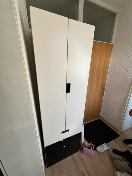 Schrank ist von Ikea. Produkt Name Nordli. Der Schrank ist einen sehr guten Zustand alle Schubladen und Türen gehen ganz normal auf und zu ohne Probleme. Die Schubladen sind alle drin jedoch nicht alle Platten weil wir den Schrank als Vorrat Schrank benutzt haben. Die Platten kann man aber selber nach einbauen weil die Löcher für die Platten Halterung sind da wenn man möchte. Die Anzeige wird leider nicht lange bleiben da wir schon sehr bald umziehen. Bei Fragen einfach melden bitte.